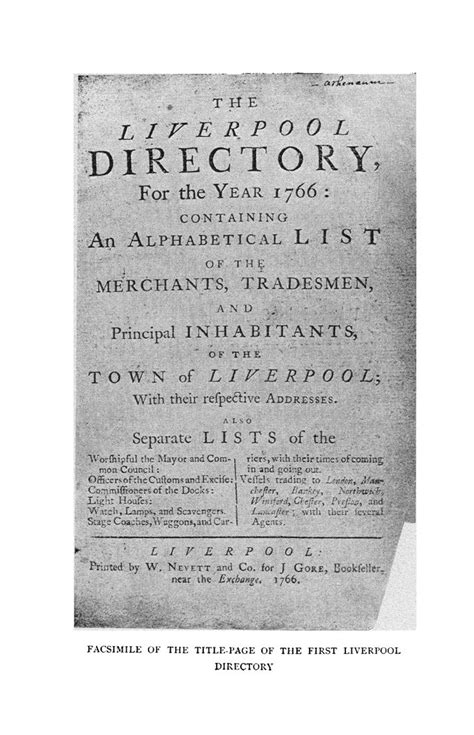 Read Liverpool's First Directory; A Reprint of the Names and Addresses from Gore's Directory for 1766: To Which Is Added a Street Directory for the Same Ye Library Binding